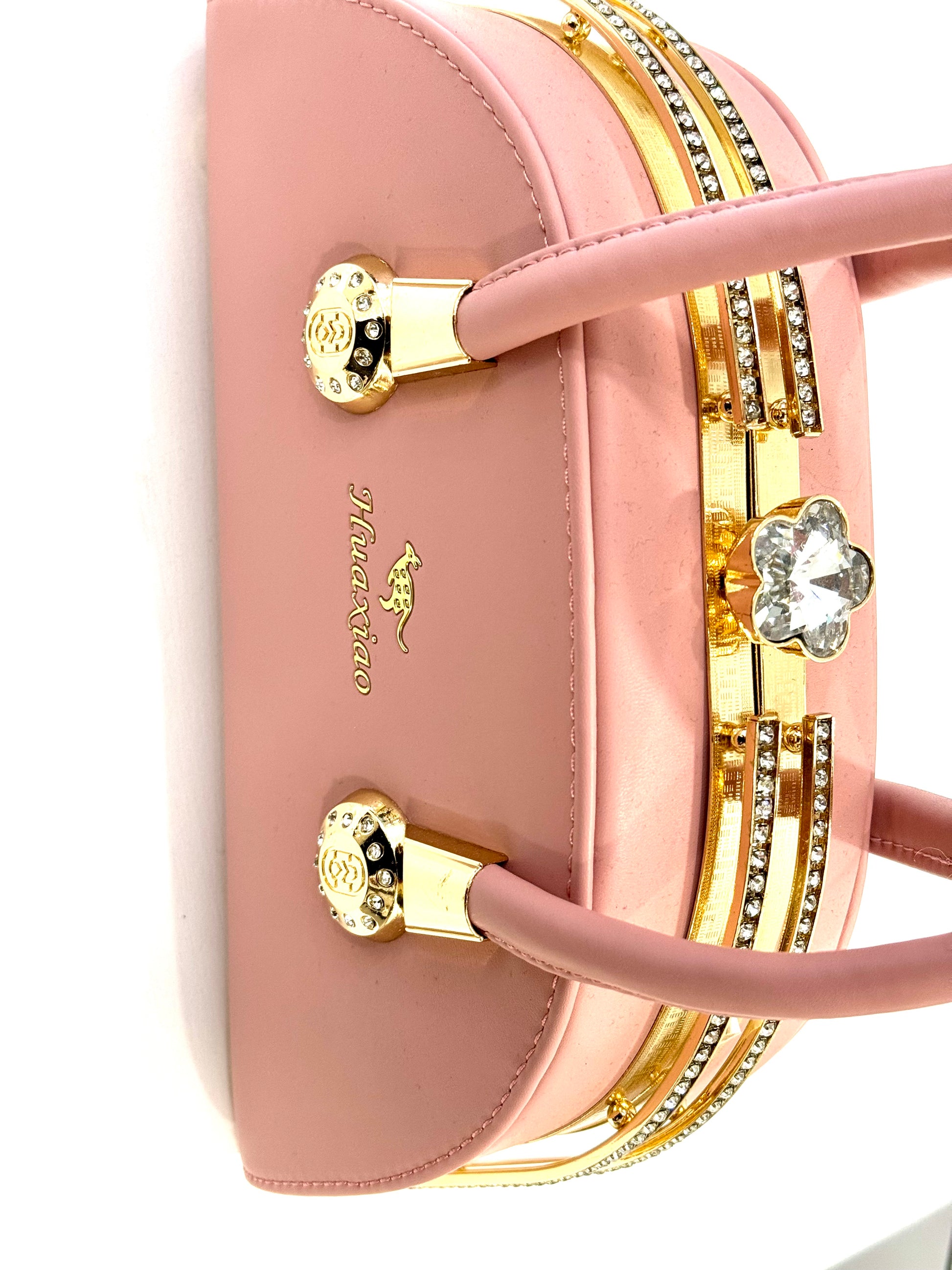 Gold plated rhinestone handbag.