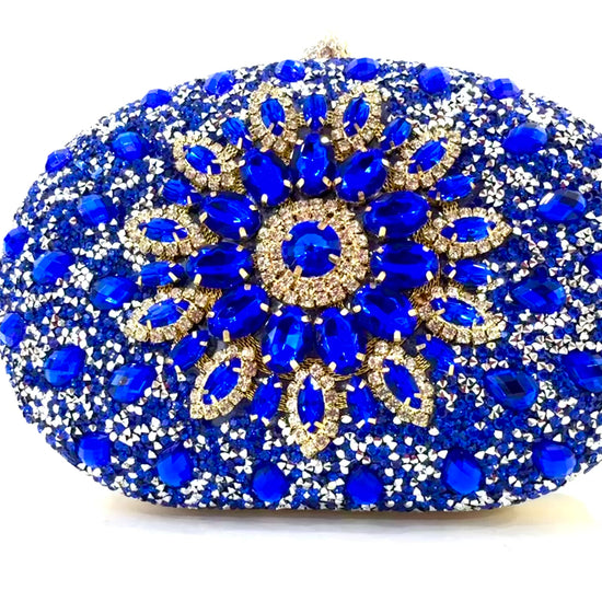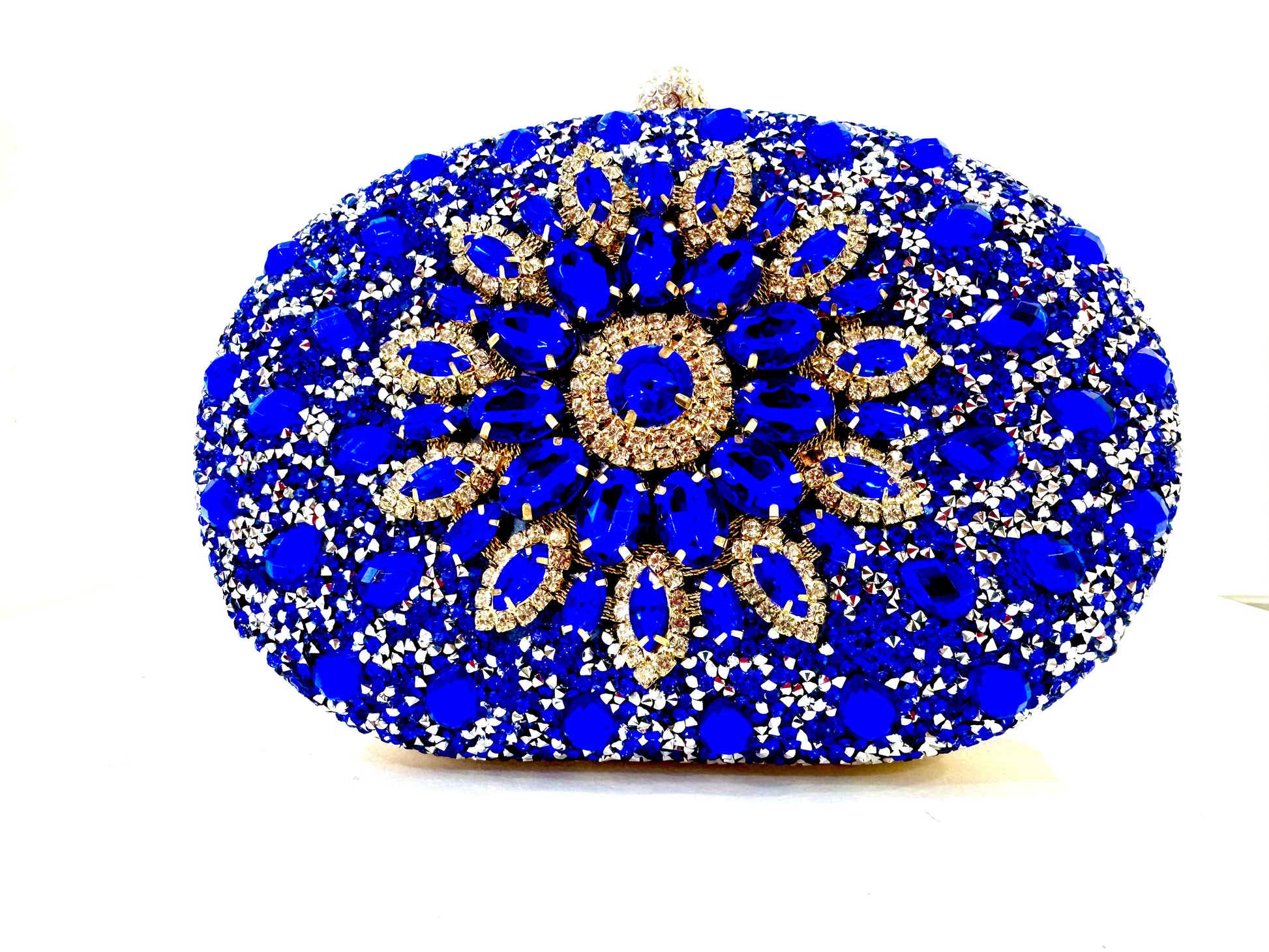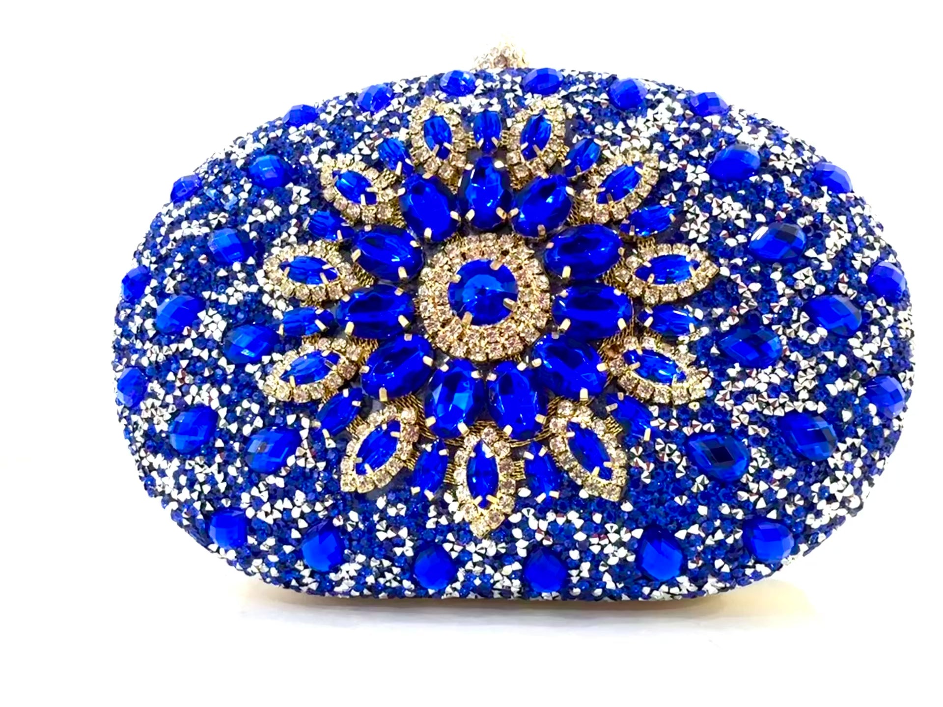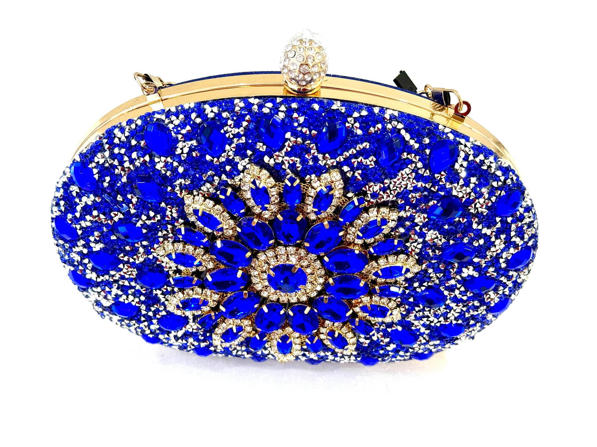 Imported rhinestones clutch. Best for sophisticated touch at gatherings. Height 6 inch length 8 inch.