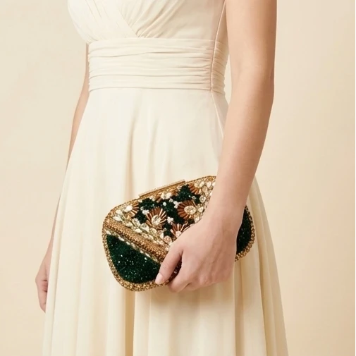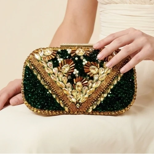 Sequence stones elegant clutch. Height 3.5 inch and length 6.5 inch.