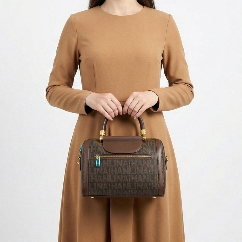 Brown synthetic leather imported bag. Height seven inches and length 10.5inches