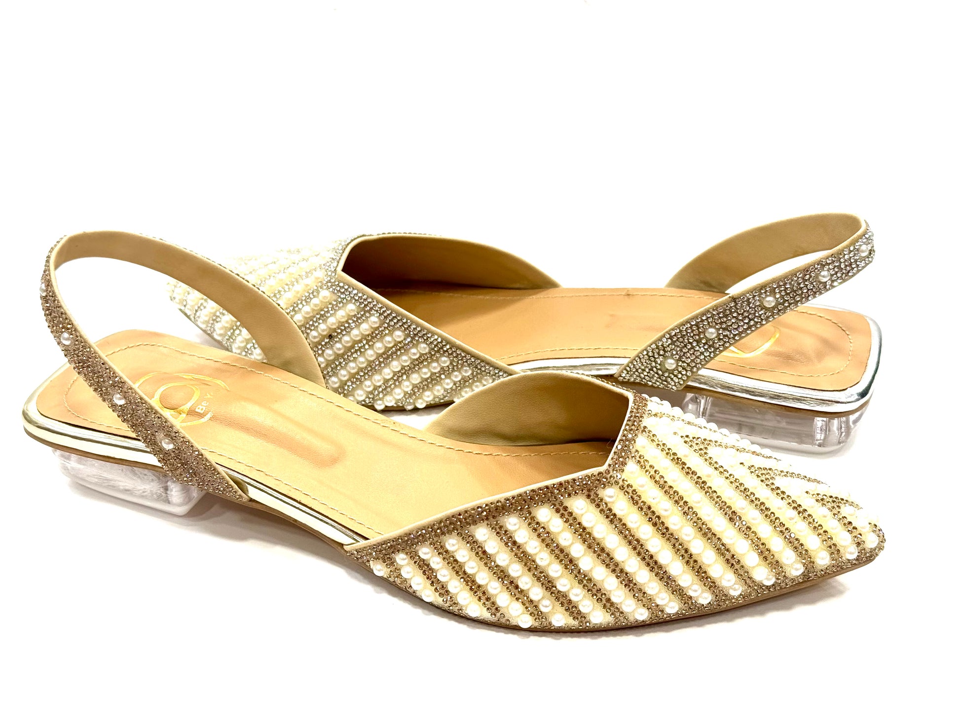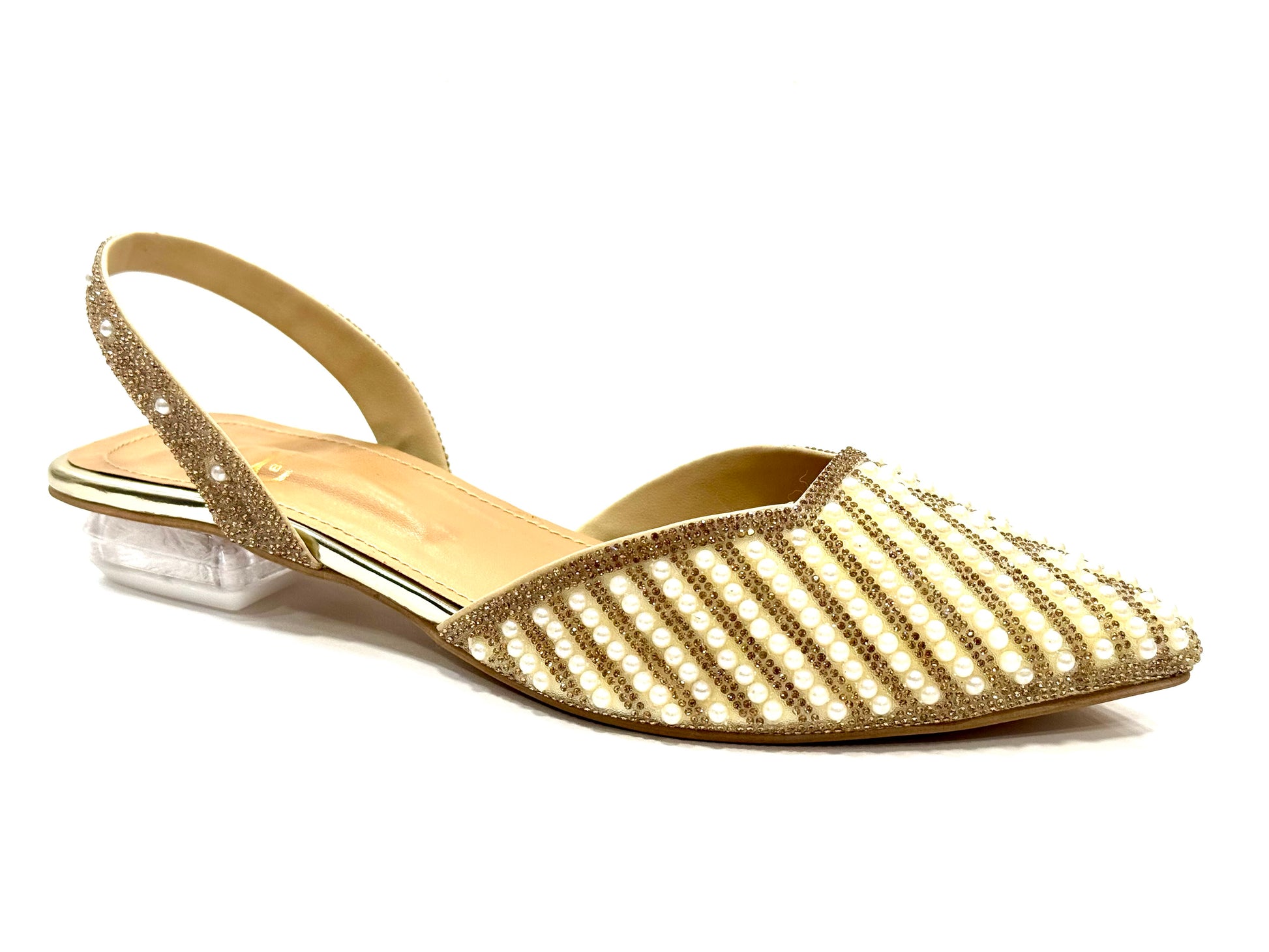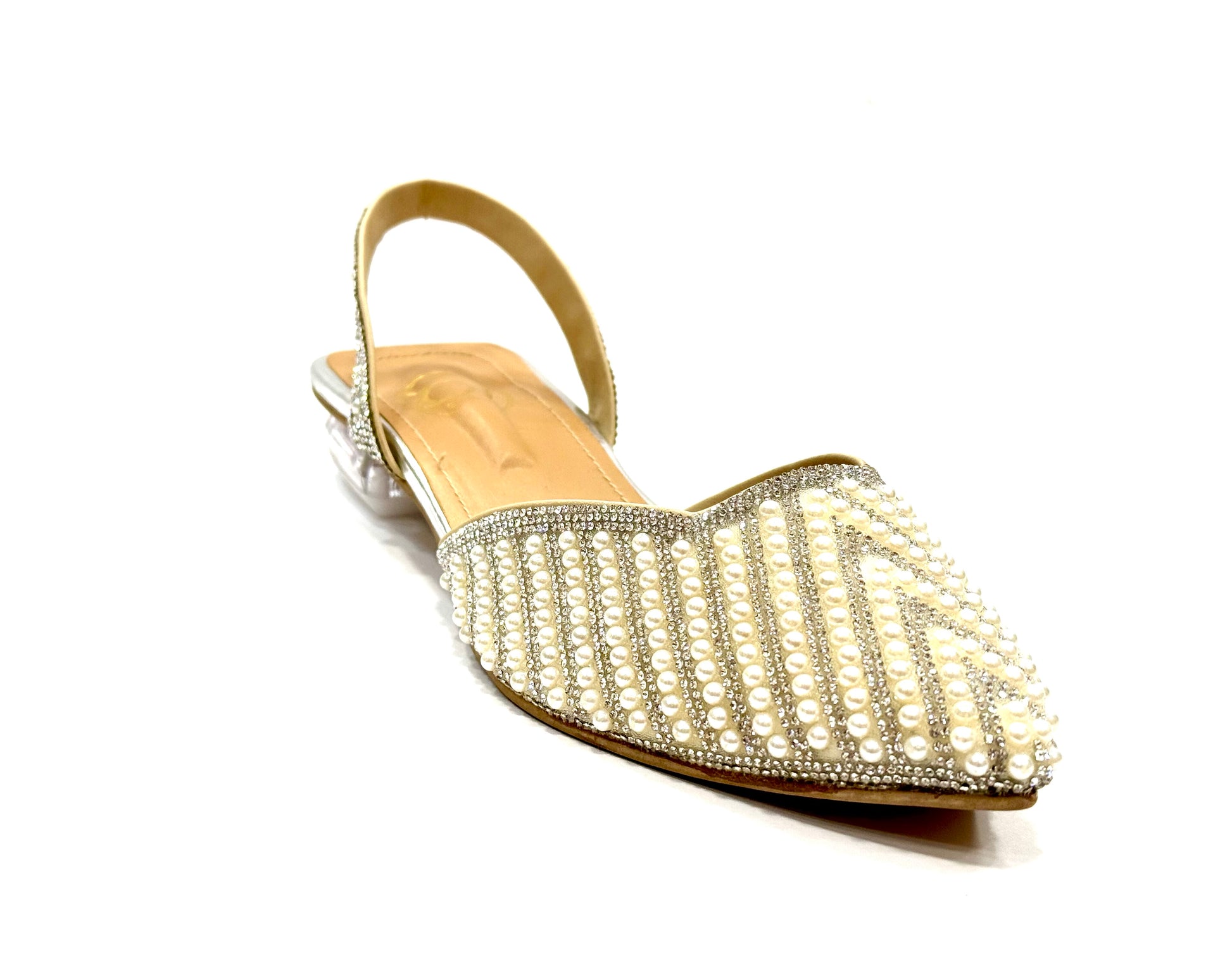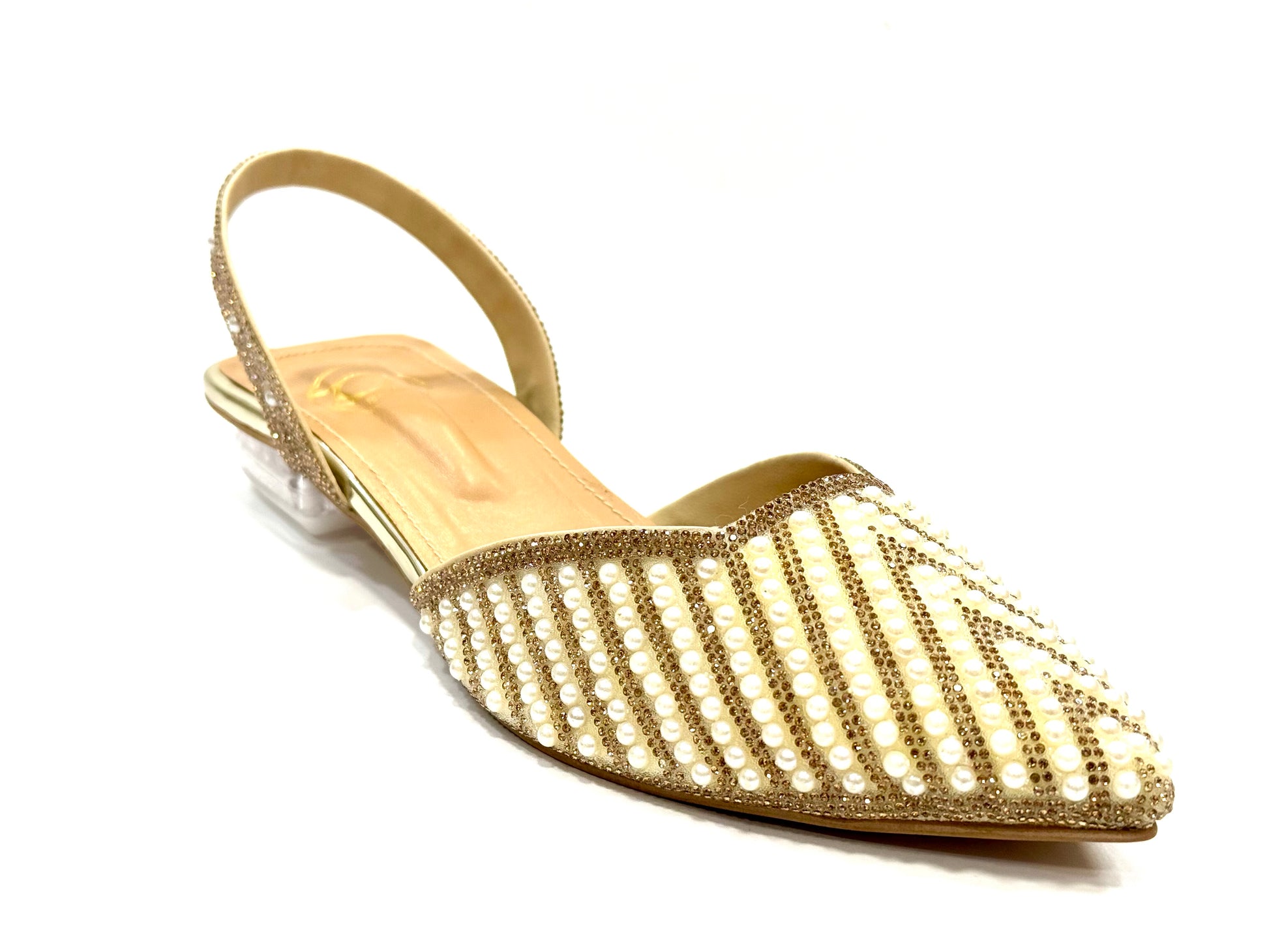 Half inch glass heel with pearls.