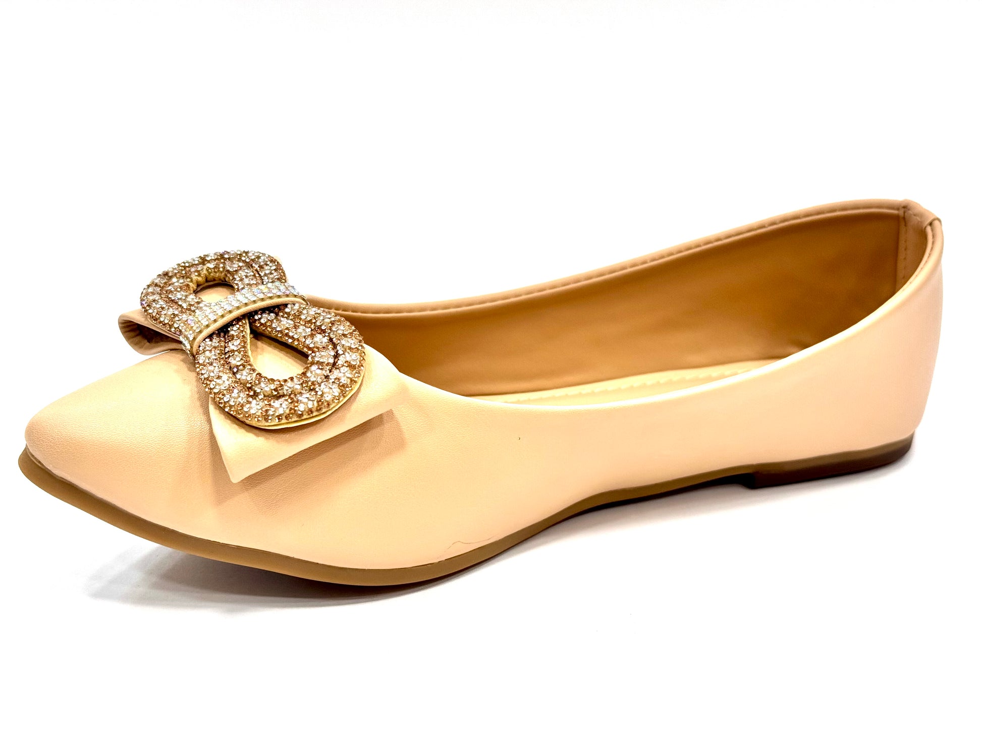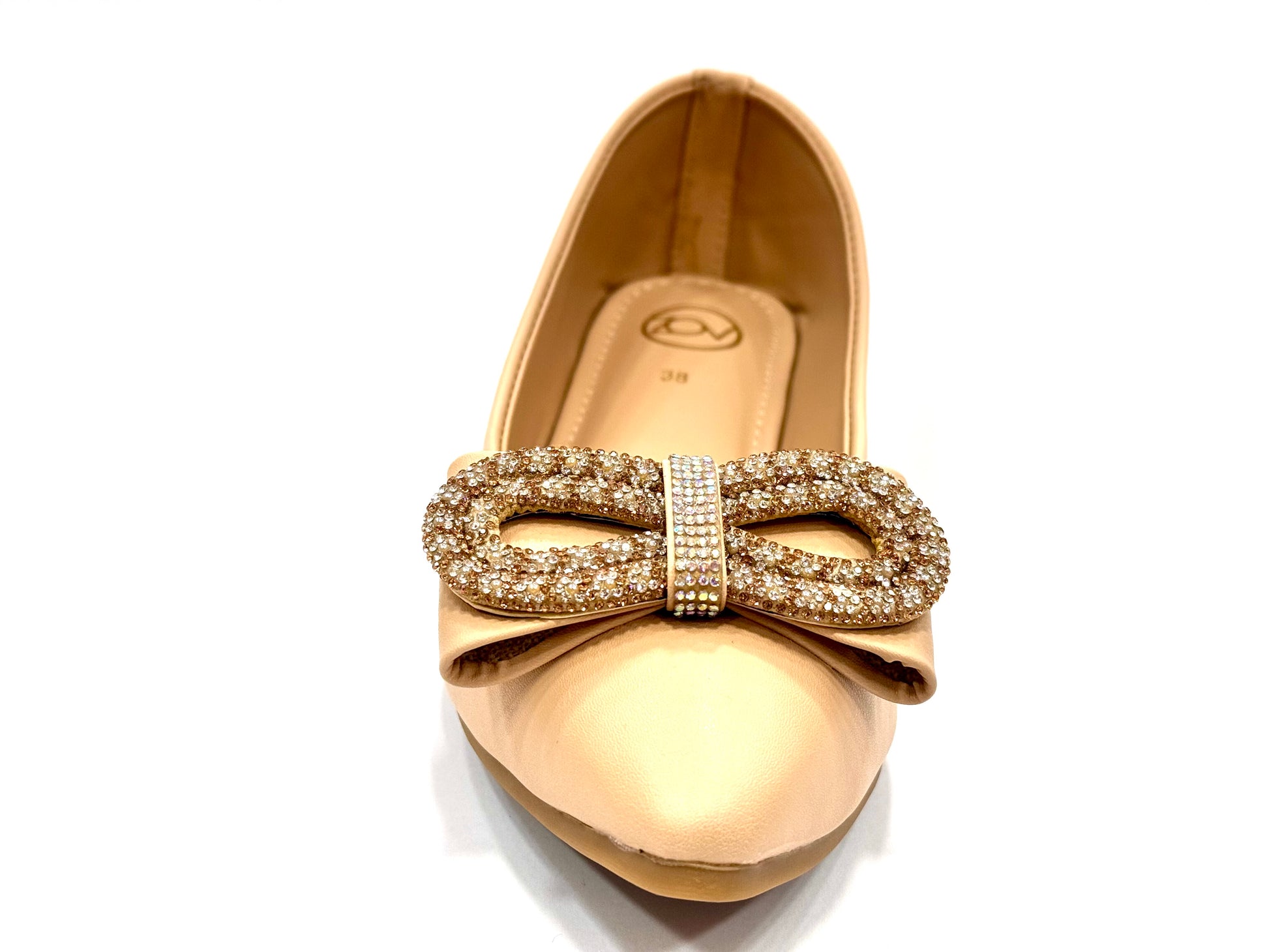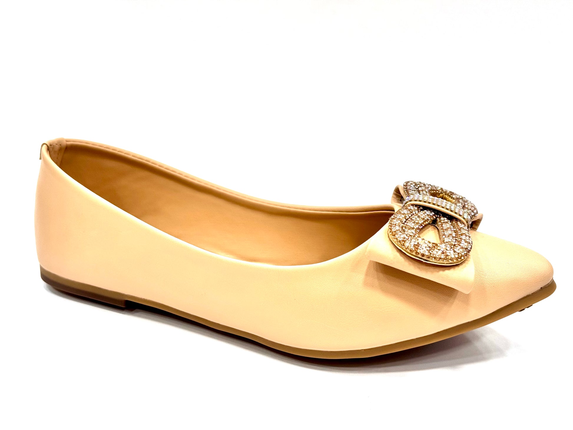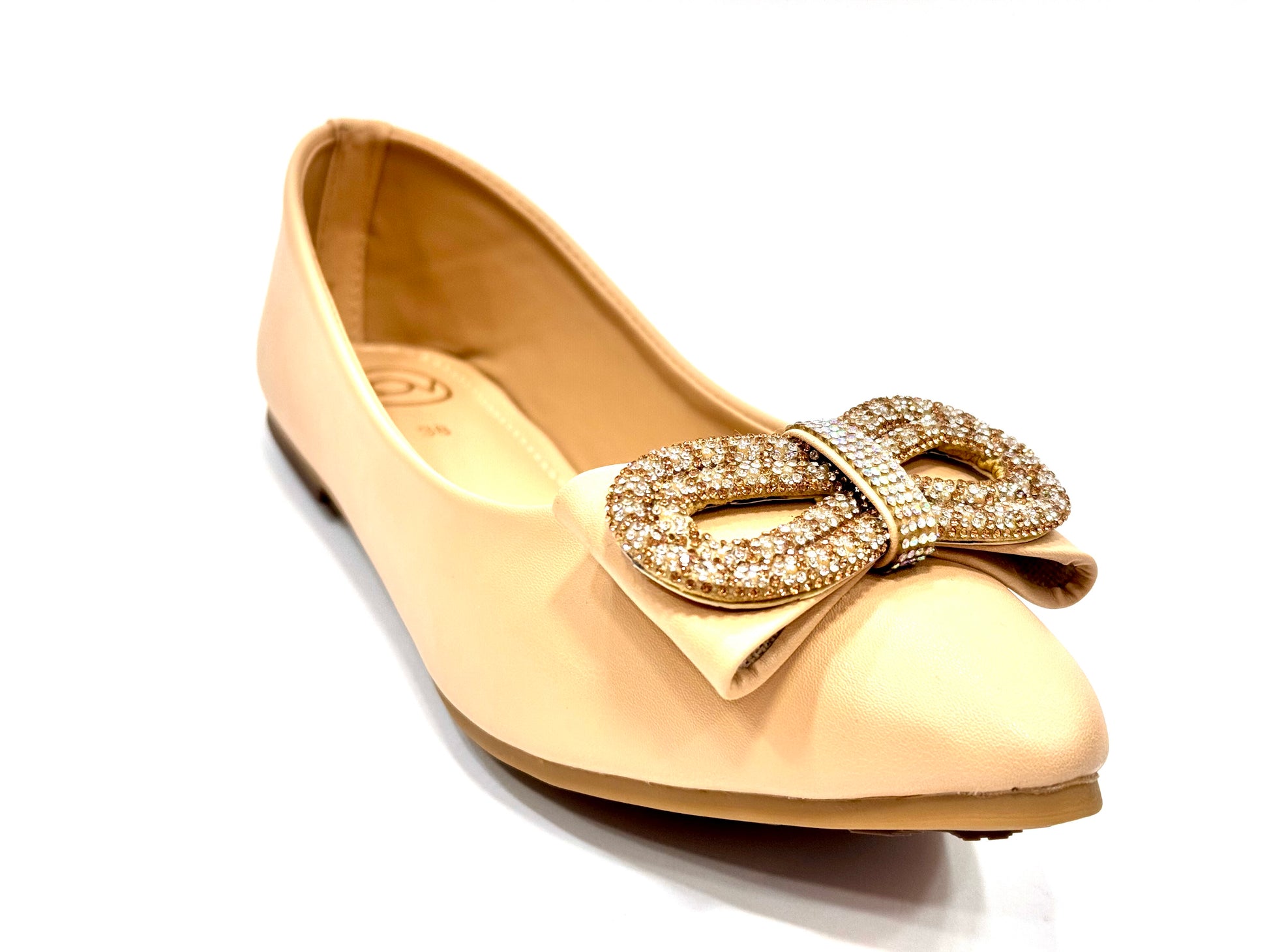 Soft pumps for daily wear. Rhinestone bow and soft padding.