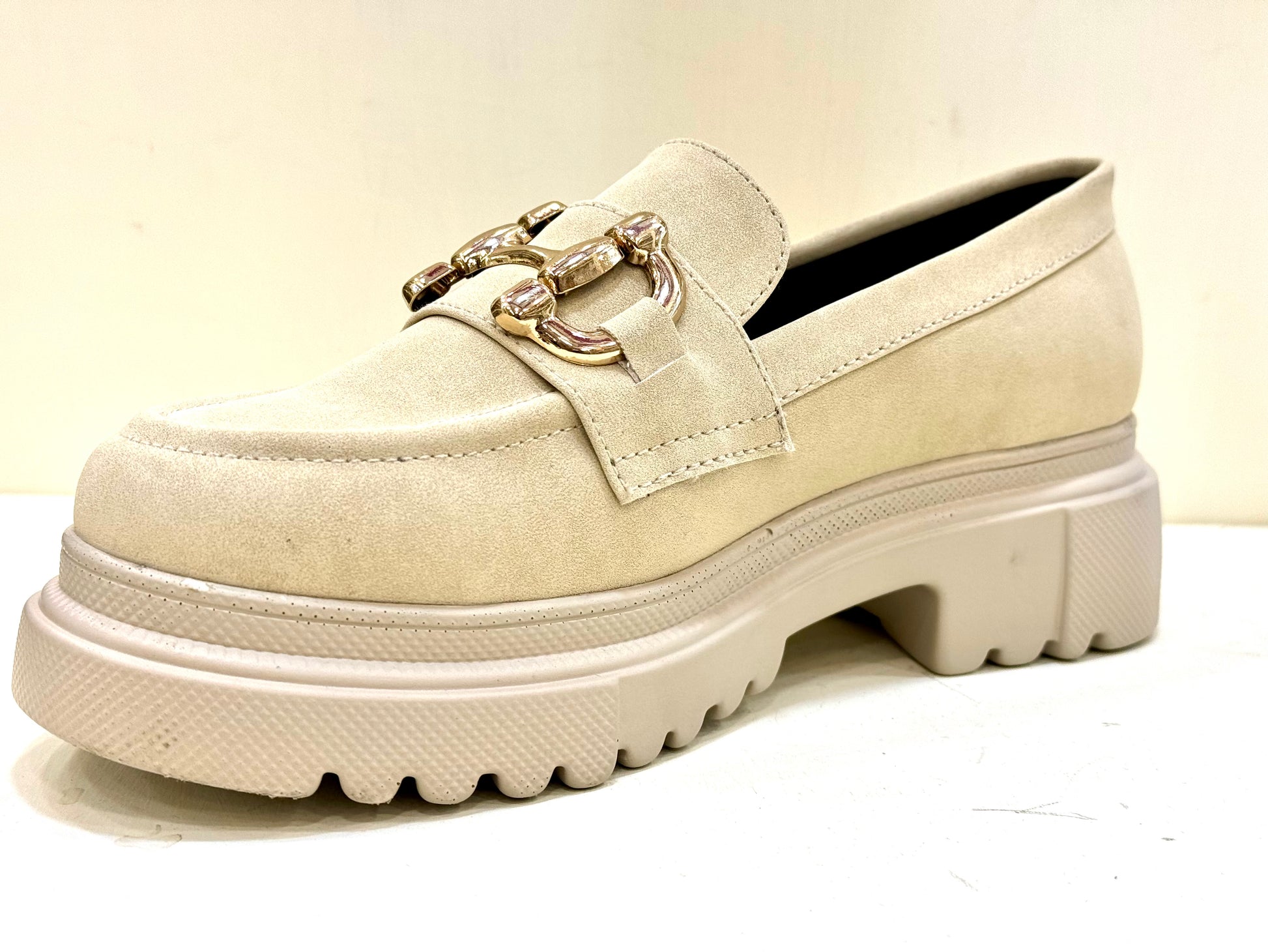 Elevate your wardrobe with Maria loafers, where sophistication meets comfort. These 2.5 inch platform loafers, adorned with a sleek metallic buckle, are crafted from high-quality imported materials. Designed for the modern woman, Maria loafers seamlessly blend style with function. Perfect for the office or a night out, they offer elegance with every step. Choose Maria for a professional look that never compromises on comfort.