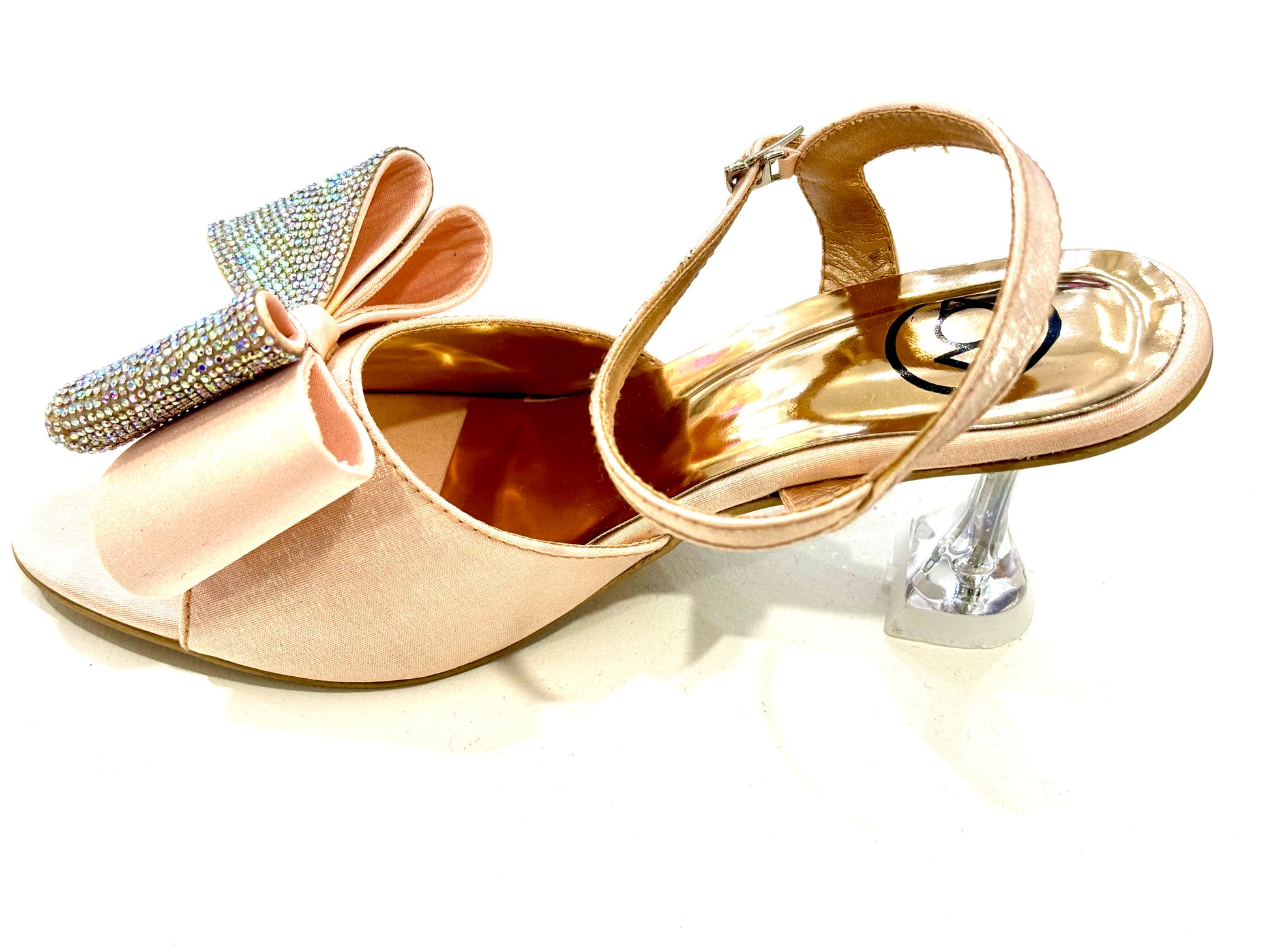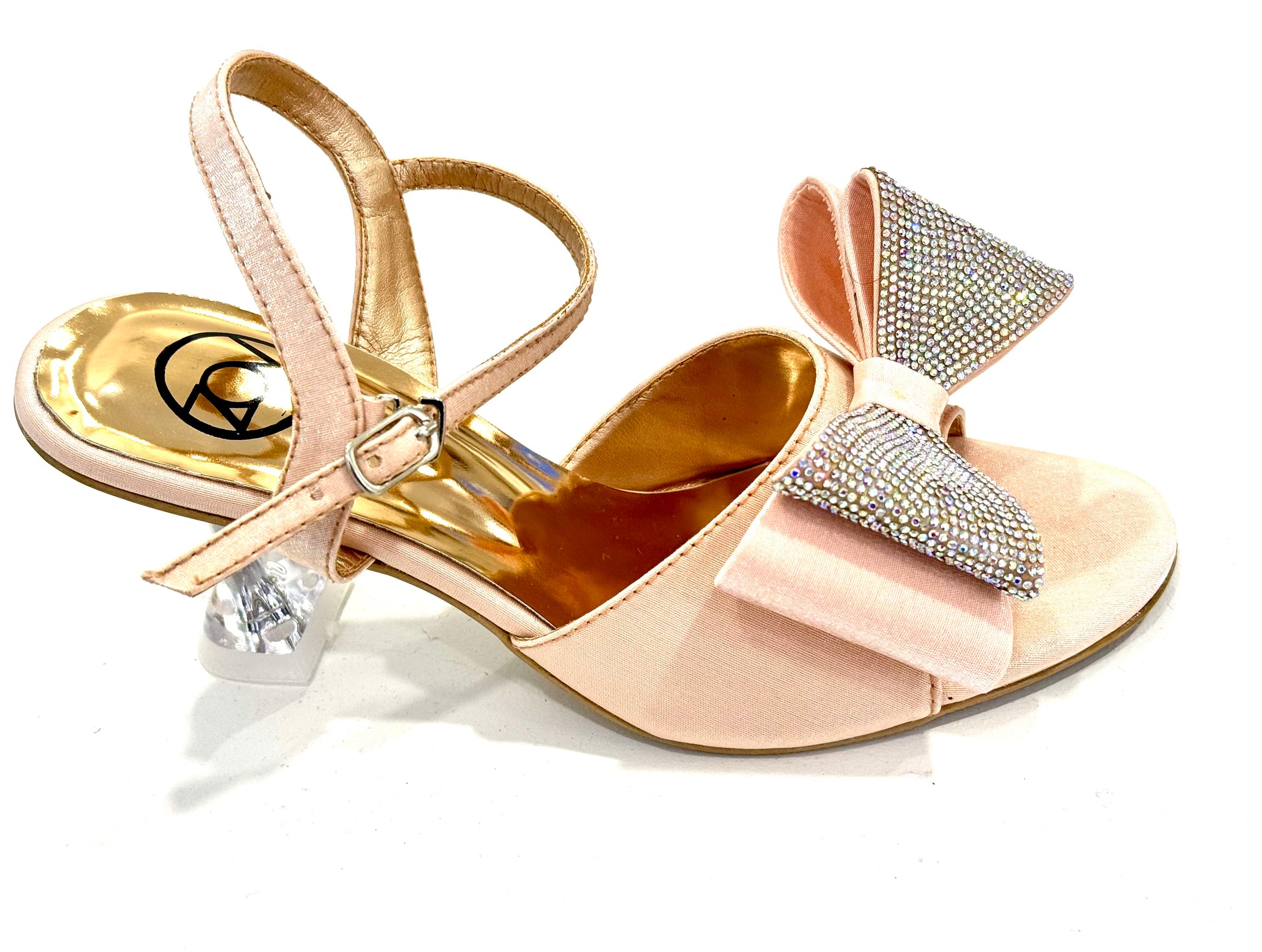 Heel size 2 inch. Rhinestone bow. Elegant style manufactured with imported materials.