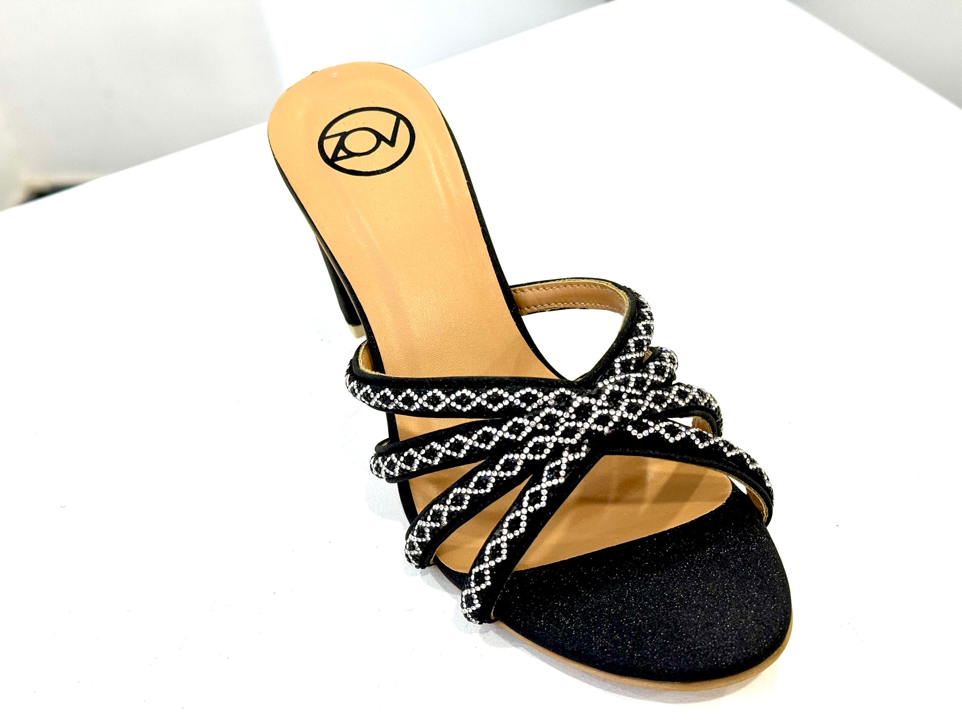2.7inch heel size. Elegantly character rhinestone stripes. Imported Materials